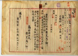 三 島根県小学校本科正教員免許ヲ有スル能美萬三郎ヨリ教員無試験検定願ニ付キ教員免許状授与ノ件(民学第一六五号)