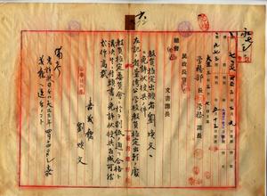 六 公学校訓導免許ヲ有スル劉喚文ヨリ教員無試験検定願ニ付キ教員免許状授与ノ件(民学第七〇七号)