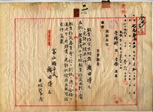 二一 富山県小学校本科正教員免許ヲ有スル織田得三ヨリ教員無試験検定願ニ付キ教員免許状授与ノ件(民学第七九五号)