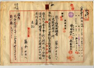五 大分県小学校本科正教員免許ヲ有スル藤本サカヘヨリ教員無試験検定願ニ付キ教員免許状授与ノ件(民学第七ノ三号・同八七二号)