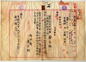 一七 台湾公学校訓導免許ヲ有スル李良弼ヨリ教員無試験検定願ニ付キ教員免許状授与ノ件(民学第七ノ三号・同九二三号)