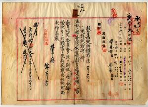 一八 台湾公学校訓導免許ヲ有スル陳芹芳ヨリ教員無試験検定願ニ付キ教員免許状授与ノ件(民学第七ノ三号・同九二五号)