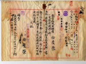 四 台湾公学校訓導免許ヲ有スル徐慶栄ヨリ教員無試験検定願ニ付キ教員免許状授与ノ件(民学第七ノ三号・同九七八号)