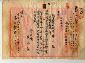 一八 台湾公学校訓導免許ヲ有スル張水龍ヨリ教員無試験検定願ニ付キ教員免許状授与ノ件(民学第七ノ三号・同一〇九五号)