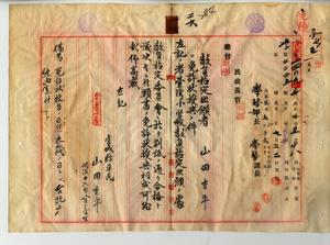 二六 宮城県小学校本科正教員免許ヲ有スル山田吉平ヨリ教員無試験検定願ニ付キ教員免許状授与ノ件(民学第七ノ三号・同一四〇九号)