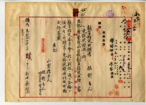 四 山梨県小学校本科正教員免許ヲ有スル佐野もんヨリ教員無試験検定願ニ付キ教員免許状授与ノ件(民学第七ノ三号・同一六〇八号)