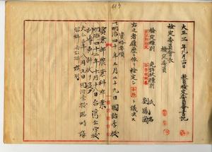 三 台湾公学校訓導免許ヲ有スル劉鳳崗ヨリ教員無試験検定願ニ付キ教員免許状授与ノ件(民学第七ノ三号・同一九六二号)