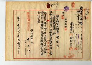 三 長崎県小学校本科正教員免許ヲ有スル原友次ヨリ教員無試験検定願ニ付キ教員免許状授与ノ件(民学第七ノ三号・同二五一四号)