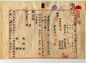 一〇 大正元年一〇月訓令第三六号台湾間税事務ニ関スル諸報告表様式中改正ノ件(訓令第一〇一号・民財第二八四三号)