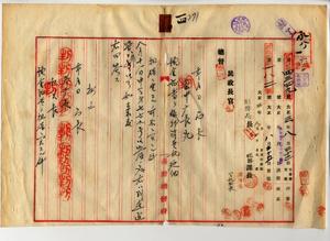 一四 台湾銀行、三十四銀行ノ預金証書ハ従来印税及ヒ砂糖消費税ニ限リ採用シタルモ其他ノ租税延納担保ニモ採用スルコトニ府議決定ノ件(民財第四三四九号)