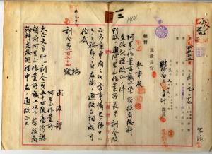 一二 大正元年一一月訓令第五四号台湾総督府阿里山作業所職工以下労役者給料支給規程改正ノ件(訓令第一六四号・民財第四五五五号)