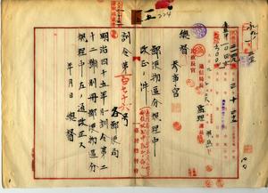 一五 輸出入植物取締法施行ニ伴ヒ明治四五年一月訓令第二二号別冊郵便物区分規程中改正ノ件(訓令第一七六号・民通第二一四九号)