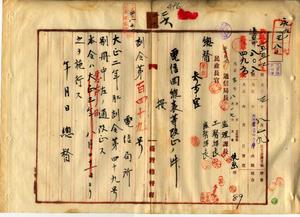 二六 大正二年三月訓令第四九号別冊電信回線表・電報中継順路表・局報順送表・同時通信回線表中改正ノ件(訓令第一四九号、民通第一五五二号)