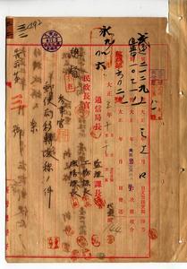 三二 台北中街郵便局ヲ台北庁大加蚋堡大稲埕南街ニ移転シ台北南街郵便局ト称スルノ件(告示第三号、民通第二一二九号、指令第二八三九六号)