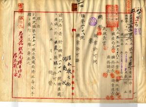 一二 花蓮港庁管内ノ亜炭鉱採掘願ニ付キ信太歌之助ト河島悦ニ鉱第一二四八号鉱区ノ鉱業許可ノ件(大正二年民殖第一五五一号)