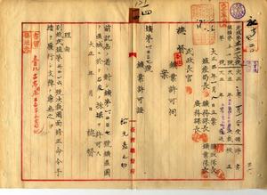 一四 台北庁管内ノ石炭採掘願ニ付キ松元嘉之助ニ鉱第一二三七号鉱区ノ鉱業許可ノ件(民殖第三二一六号)