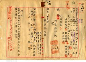 一七 台北庁管内ノ石炭採掘願ニ付キ渡部辰五郎・渡辺醇之助・瀧野種孝・朝比奈正一・蔡火炎ニ鉱第一二三六号鉱区ノ鉱業許可ノ件(民殖第三七五九号)