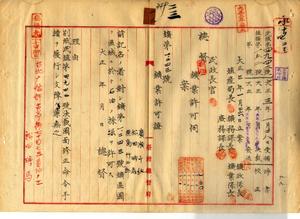 二三 新竹庁管内ノ石油採掘願ニ付キ広瀬千秋・松田時馬・鹿島竹二郎ニ鉱第一二四三号鉱区ノ鉱業許可ノ件(民殖第四九四二号)