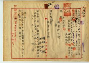 五 広瀬千秋・松田時馬・鹿島竹二郎ヘ嘉義庁哆囉嘓東頂堡前大埔庄及台南庁赤山堡九重橋庄ノ内石油採掘ヲ許可ス(鉱第一二四九号・民殖第三五二号)