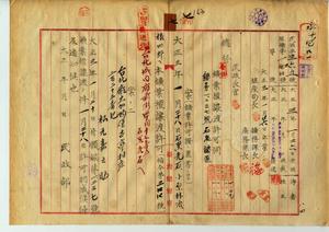 七 松元嘉之助ガ所有スル台北庁文山堡松柏崎庄外三庄内ノ石炭鉱ノ鉱業権ヲ石黒光石・小原林治・狼四郎ヘ譲渡スルノ件許可ス(指令第三四四号・民殖第三六五号)