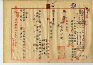 一四 富田栄太郎・瀧野種孝・渡辺醇之助ヘ嘉義庁嘉義東堡公田庄土名名無水瀧内ノ石油鉱ニ於ケル石油採掘ヲ許可ス(鉱第一二四〇号・民殖第四三三号)