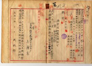 一三 鉱業人葉春及ヒ呉顔高ノ出願ニヨル台北庁管内ノ鉱業権ニ付キ劉金水ノ加名及ヒ呉顔高ノ除名願許可ノ件(指令第九九一号・民殖第九八三号)