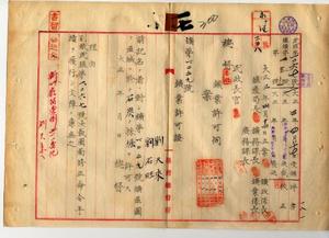 一七 劉天来ト劉石旺ヘ新竹庁管内ノ石炭鉱採掘願許可ノ件(民殖第一〇六七号)