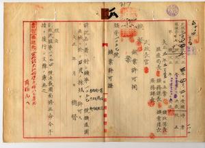 一八 羅福元・江伝禄・鍾天枝・鍾亜妹・詹阿顕ヘ新竹庁管内ノ石炭鉱採掘願許可ノ件(民殖第一〇七四号)