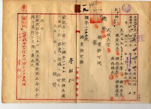 一九 詹招仁ヘ新竹庁管内ノ石炭鉱採掘願許可ノ件(民殖第一〇九一号)