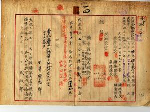 一四 新竹庁管内石炭鉱区鉱業人玉井重治郎ト柴田定雄ヨリノ玉井重治郎ヲ除名シ彭林寿ヲ加名スル鉱業権名除名願許可ノ件(民殖第一五三五号)