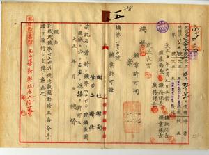 一五 謝■(毛+彡)・謝南・陳田土・謝降ヘ石炭鉱採掘願許可ノ件(民殖第一五四六号)一五-一 台北庁管内石炭鉱区鉱業人何応棋ト何石象ヨリ増区ニ係ル鉱区変更願許可ノ件