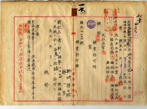 一六 野崎与松ト林一男ヘ台北庁管内ノ石炭鉱採掘願許可ノ件(民殖第一五四八号)一六-一 林一男ト野崎与松ヨリノ台北庁管内ノ石炭鉱採掘願却下ノ件