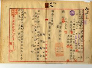 一七 謝■(毛+彡)・陳田土・謝降・謝南ヘ台北庁管内ノ石炭鉱採掘願許可ノ件(民殖第一五四九号)