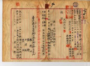 二 台北庁管内石炭鉱区共同鉱業人ノ陳伝旺・張矮・王清俊・黄土・林家斌・游徳福ノ内陳伝旺・張矮・王清俊・黄土ヲ除名シ、林潘氏寛・林毓英・呂清陽・林沢巽ノ加名願許可ノ件(指令第一〇四六九号・民殖第一六四八号)