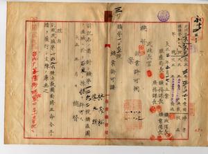 三 林茂松ト陳大頭ヘ台北庁管内ノ石炭鉱採掘願許可ノ件(民殖第一六八六号)