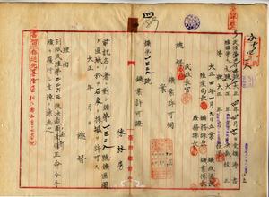 四 陳林房ヘ台北庁管内ノ石炭鉱採掘願許可ノ件(民殖第二二六三号)
