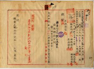 五 鉱業人謝■(毛+彡)・陳田土・謝降・謝南ヨリノ台北庁管内ノ石炭鉱区減区ニ係ル鉱区変更願許可ノ件(指令第一一一一六号・民殖第二二六四号)
