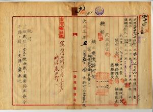 九 鉱業人城崎彦五郎ヨリノ台北庁管内ノ石炭鉱区増区ニ係ル鉱区変更願許可ノ件(指令第一七三三一号・民殖第二二九二号)九-一 城崎彦五郎ト朝比奈正一ヨリノ台北庁管内ノ石炭鉱採掘願許可ノ件
