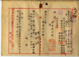 三 陳阿良ト黄添丁ヘ新竹庁管内ノ石炭鉱採掘願許可ノ件(民殖第四五〇四号)