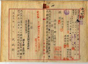一四 賀田金三郎ヘ台北庁管内ノ石炭鉱業権ニ波多野岩次郎ノ加名願許可ノ件(指令第二八六二四号・民殖第五〇〇九号)