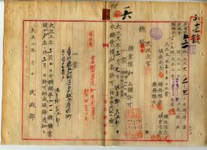 一六 賀田金三郎ヘ台北庁管内ノ石炭鉱業権ニ波多野岩次郎ノ加名願許可ノ件(指令第二八六二二号・民殖第五〇一一号)