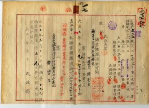 一七 顔雲年ヨリ賀田金三郎ト波多野岩次郎ヘ台北庁管内ノ石炭鉱業権譲渡願許可ノ件(指令第二八六三三号・民殖第五〇一二号)