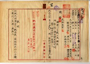 一二 青木太三郎・飯田喜和治・青木庸三郎ヘ台北庁管内ノ石炭鉱区減区変更願許可ノ件(指令第三四九二一号・民殖第五四一〇号)