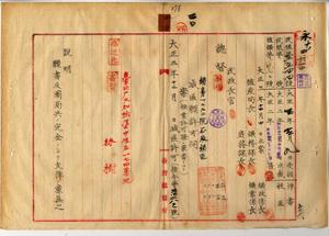 二〇 森樹ヘ台北庁管内ノ石炭鉱区減区変更願許可ノ件(指令第三四二八三号・民殖第五五四四号)