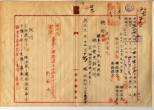 二三 劉鳳鳴ヘ台北庁管内ノ石炭鉱区減区変更願許可ノ件(指令第三四五七七号・民殖第五六四九号)