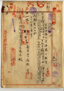 八 南投庁管内ノ陳婦・陳貫ヘ開墾ノ為メ南投庁南投堡新街ノ官有地売渡処分報告ノ件(民殖第二一三号・指令第二八一八号)
