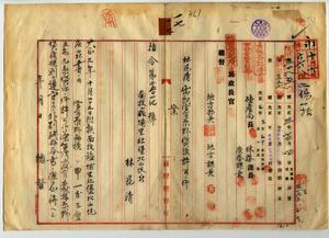 一七 南投庁管内ノ林昆清ヘ私設埤圳敷地トシテ南投庁埔里社堡北山坑庄ノ官有原野貸渡願許可ノ件(民殖第五二八五号・指令第三五〇二四号)