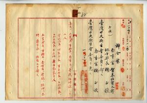 一二 台湾中央衛生会長代理高田元治郎ノ内申ニヨリ参事官賀来佐賀太郎ト地方部長楠正秋ニ台湾中央衛生会委員ヲ命シ参事官楠正秋ノ台湾中央衛生会委員ヲ免ス(秘甲第一〇六号)