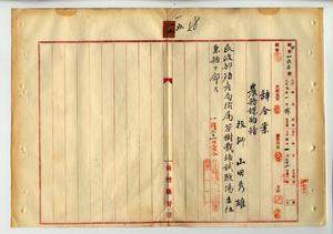 一五 殖産局長高田元治郎ノ具申ニヨリ農務課勤務台湾総督府技師山田秀雄ニ民政部殖産局附属茶樹栽培試験場主任兼務ヲ命ス(秘甲第一六三号)