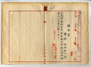 一八 蕃務本署長事務取扱代理加福豊次ノ内申ニヨリ警視山本新太郎ニ民政部蕃務本署理蕃課長事務取扱加福豊次不在中ノ代理ヲ命ス(秘甲第四五二号)
